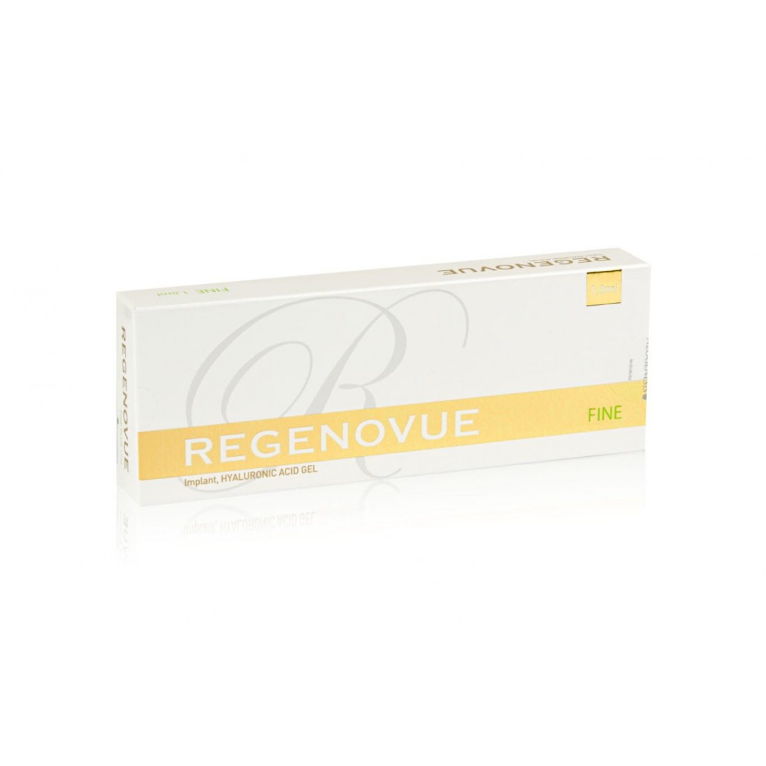 Regenovue FINE is a sterile, apyrogenic, viscoelastic hydrogel implant based on cross-linked hyaluronic acid of non-animal origin. The device features a fine-particle gel structure with a reduced degree of cross-linking, ensuring high capacity for integration within the superficial layers of the dermis. Due to its regular and compact molecular structure, the preparation demonstrates mechanical stability post-implementation without the risk of excessive migration.